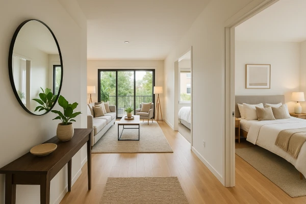玄關是整個居家的氣口,也是好運的入口。宜保持整潔明亮,避免堆放雜物或鞋櫃過高阻氣。若大門正對窗户或後門,氣易直進直出,可擺放屏風或綠植以聚氣。入口光線柔和、香氣宜人,能使人一進門便感到安定與祥和。