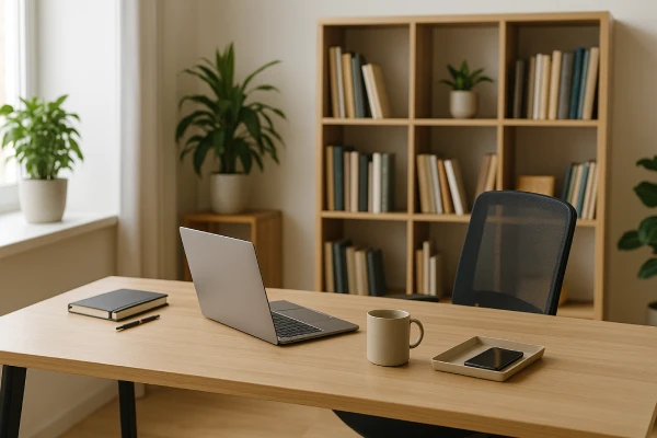 辦公桌的位置象徵事業基礎。背後有靠山(如牆或書櫃)代表有人相助、貴人運旺;若背後是通道或窗户,則象徵「無靠之位」,容易心神不寧、計畫受阻。座位前方應開闊明亮,避免正對門口或柱角,以防沖煞與氣流過強。
