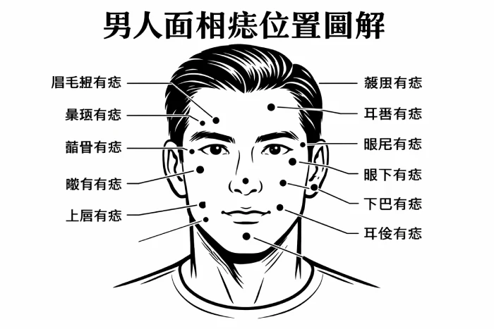 男人臉上痣的位置圖:快速看懂不同部位代表什麼